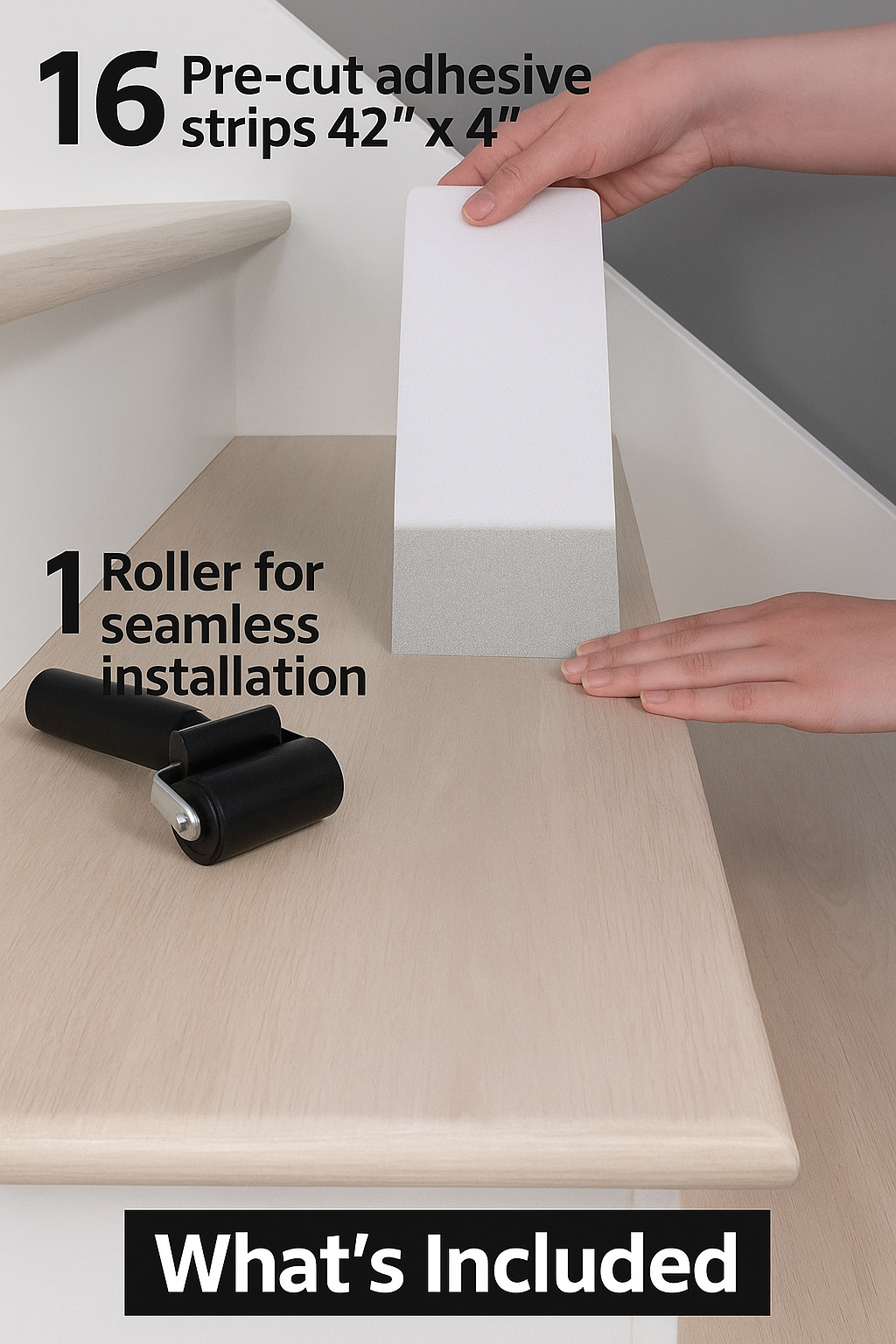 16 Pack Non-Slip Stair Treads, 4" x 42" Anti Slip Resistant Stairs Tread Grip Tape, for Kids Elders and Pets, Pre-Applied Adhesive with Roller - Clear